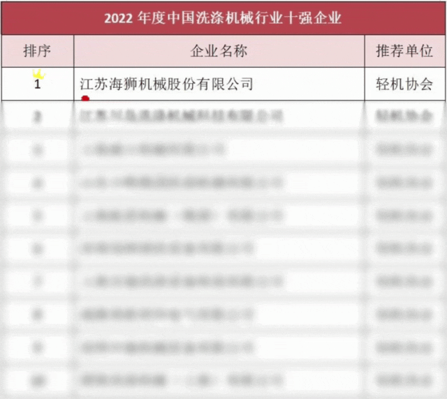 同時,由中國輕工機械協(xié)會推薦,榮獲2022年度中國洗滌機械行業(yè)十強企業(yè)中,江蘇海獅機械榮居榜首,繼續(xù)領(lǐng)跑工業(yè)洗滌機械行業(yè),展現(xiàn)出54年耕耘工業(yè)洗滌機械行業(yè)的深厚積淀和卓越成績。
