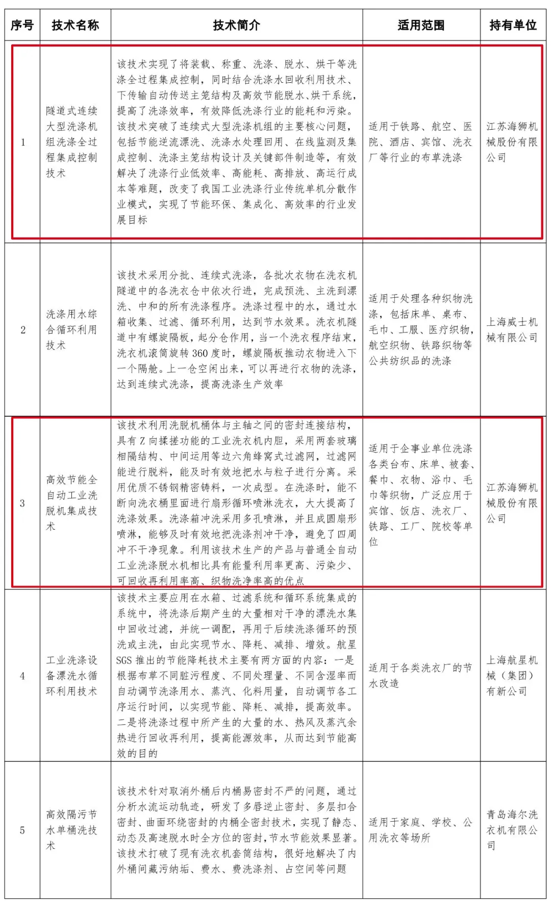 2020年11月16日,水利部、國家機關(guān)事務(wù)管理局關(guān)于公布國家成熟適用節(jié)水技術(shù)推廣目錄(2020年)的公告正式發(fā)布,為貫徹節(jié)水優(yōu)先方針,落實《國家節(jié)水行動方案》目標(biāo)任務(wù),強化節(jié)水科技創(chuàng)新引領(lǐng),促進水資源節(jié)約集約利用,水利部、國家機關(guān)事務(wù)管理局共同征集了洗滌設(shè)備、衛(wèi)生潔具、中央空調(diào)等領(lǐng)域的節(jié)水技術(shù)。經(jīng)專家評審、網(wǎng)絡(luò)公示,最后洗滌設(shè)備領(lǐng)域有4家企業(yè)5項成熟技術(shù)被收錄到《國家成熟適用節(jié)水技術(shù)推廣目錄(2020年)》中。江蘇海獅機械股份有限公司的隧道式連續(xù)大型洗滌機組洗滌全過程集成控制技術(shù)和高效節(jié)能全自動工業(yè)洗脫機集成技術(shù)被收錄到國家成熟適用節(jié)水技術(shù)推廣目錄之中。