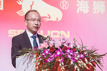 陳宏董事長就海獅50年來的發展作了詳細報告:海獅機械前身為樂余農機修配廠,成立于1969年。1980年,海獅看準市場先機,研發出了國內第一臺全自動洗滌脫水機,填補了國內工業洗滌設備制造的空白,也為工業洗滌行業的建立奠定了基礎;在80年底,海獅產品已經成為中國人民解放軍總后勤部、亞運會等中央單位指定專用洗滌機械產品。1993年,海獅把準行業命脈,與泰國、馬來西亞、德國等合資建辦制造公司,為今后全球產業布局打下基礎,在國內建立43個辦事處,服務網點布局全國各地;2010年,海獅研發了國內首臺隧道式連續洗滌設備(簡稱洗衣龍),彌補了國內大型高端集成式洗滌設備的空白。海獅在行業率先產業轉型升級,從前端洗滌到后整理設備,全產業鏈發展,產業涉及各個領域,同時與英國Xeros公司共同研發全球首創的超節能微粒子洗滌設備,改革了全新的洗滌模式。